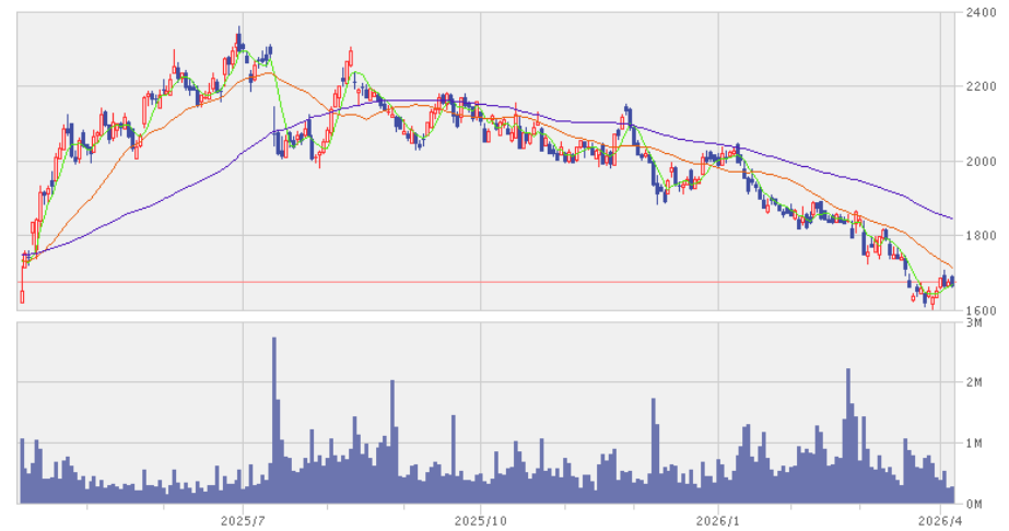 株価の動きを見ながらではありますが1,660円代位で購入検討していこうと思います