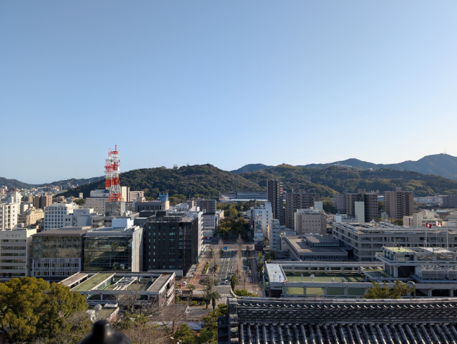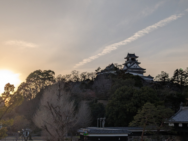 高知城の眼の前に博物館がありまして、そちらのテラスで夕暮れに照らされた高知城をパシャリ