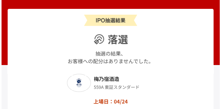 【IPO結果】梅乃宿酒造(559A)は見事に落選!公開価格600円で上場日に直接狙う戦略へ