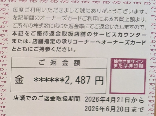 イオンの優待であるキャッシュバックについて案内の書類が届きました🎉